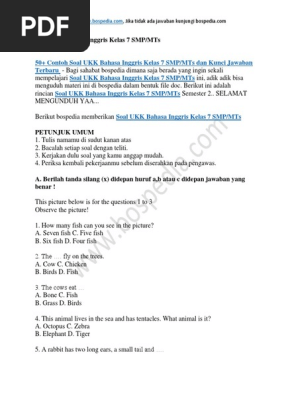50 Contoh Soal Ukk Bahasa Inggris Kelas 7 Smp Mts Dan Kunci Jawaban Docx
