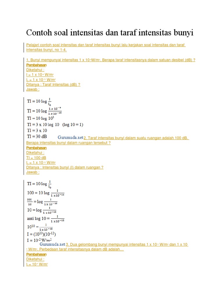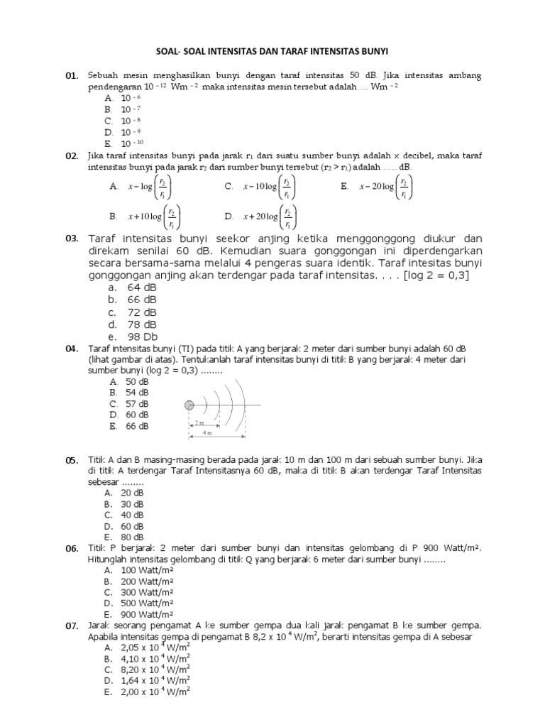 Contoh Soal Intensitas Dan Taraf Insoaltensitas Bunyi