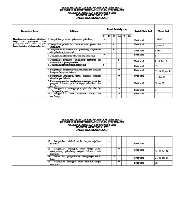 Kisi Kisi Soal Getaran Gelombang Dan Bunyi