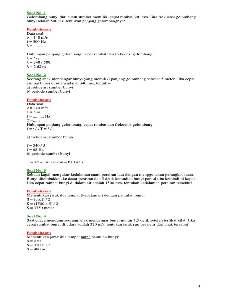 Jika kecepatan bunyi di udara 340 m s 1 dan kecepatan mobil 20 m. 1 Sebuah gelombang tranversal merambat pada seutas dawai yang memiliki panjang 2 m dan massa 25 gram dengan cepat 2 1. Download dan kerjakan soalnya.