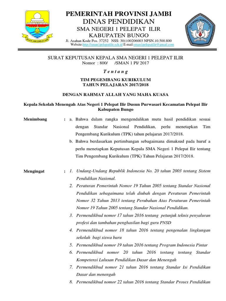 Penerbitan SK Kepala Sekolah untuk mengangkat berbagai jabatan seperti TPK ini. Surat keputusan kepala sekolah dasar negeri pangkatrejo nomor. Sk tim pengembang kurikulum tahun pelajaran 20192020 tersedia untuk jenjang sd smp sma smk.