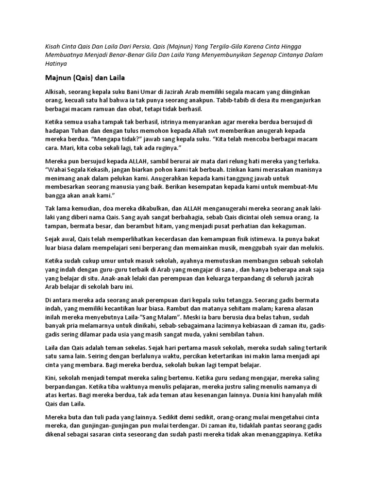 Kitab Laila Majnun PDF Versi Indonesia - Cinta sejati mampu menjelma menjadi kekuatan yang tak ada habis- nya. All books format are mobile-friendly. Download Cerita Laila Majnun Lengkap Pdf PDF 1600 MB - SamPDF SamPDF AKHIR KISAH CINTA LAILA DAN MAJNUN - Eps.