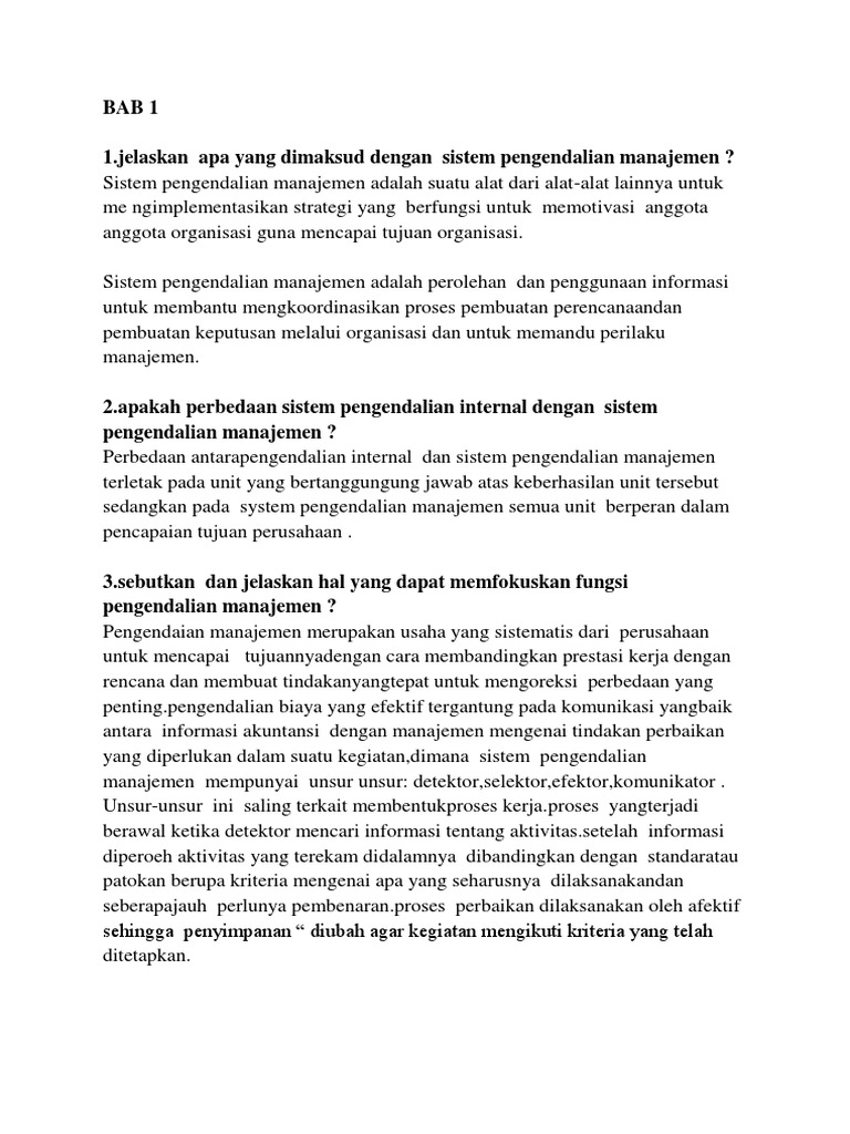 Kerjakan soal-soal berikut ini. Pengendalian manajemen tidaklah bersifat otomatis 3. Berbagiruang Berikut adalah kumpulan latihan soal Audit Dan Pengendalian Manajemen Sistem Informasi yang terdiri dari 50 soal pilihan ganda.