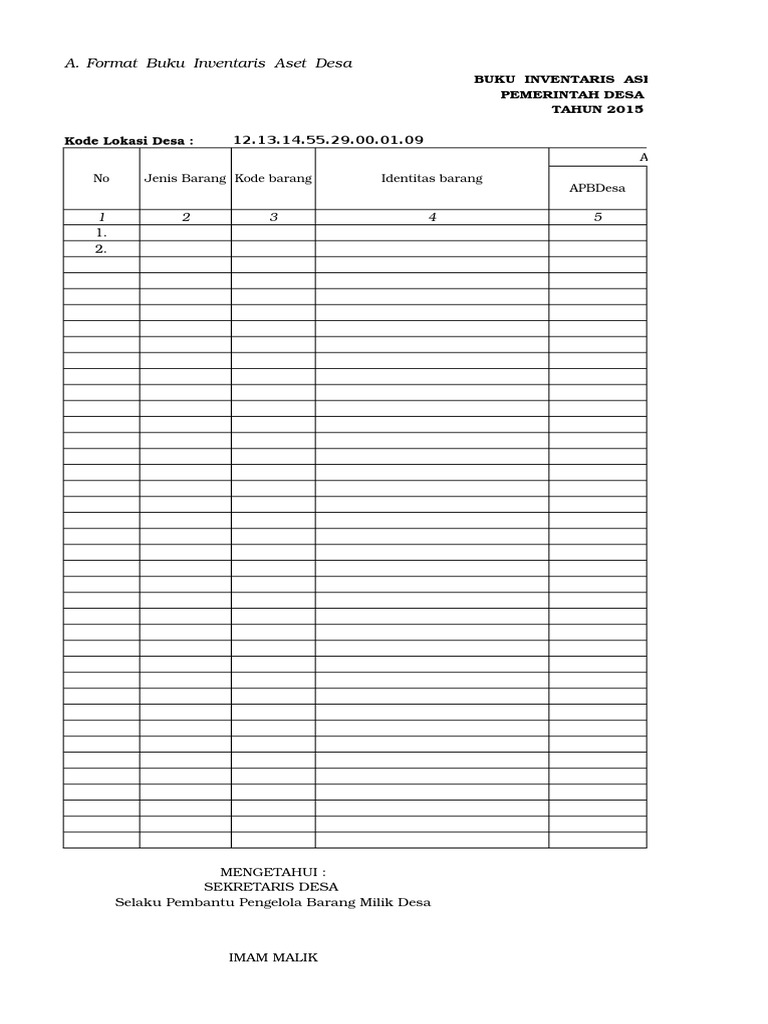 Contoh Buku Inventaris Aset Desa Dan Petunjuk Pengisian Nya Format Administrasi Desa