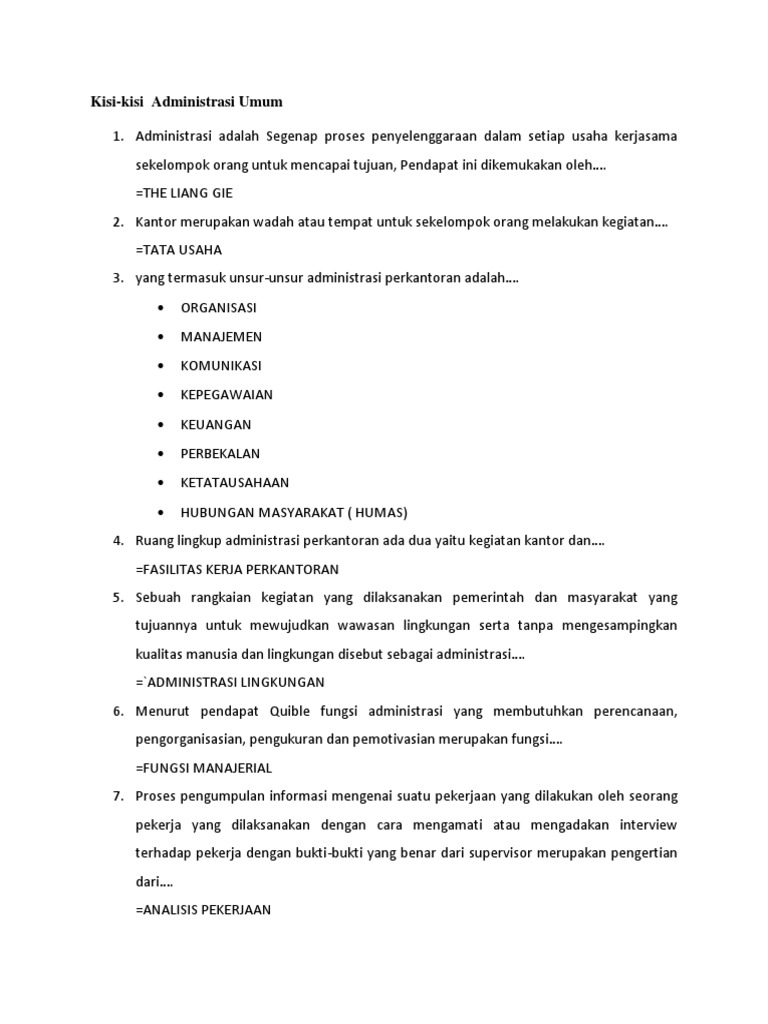 Kisi kisi uas administrasi umum. Kisi Kisi Administrasi Umum Kelas 10 Merupakan file Contoh Berkas Guru yang bisa digunakan untuk melengkapi semua keperluan administrasi guru di sekolah yang berhubungan dengan KELAS umum wallpaper dan bisa juga di gunakan sebagai bahan perbandingan atau referensi yang sesuai dengan keperluan guru dan sekolah agar lebih mudah dalam membuat dan mengelola semua kelengkapan Administrasi Guru di sekolah Untuk lebih jelasnya silahkan disimak Ulasan dan referensi tentang file Kisi Kisi. Semoga mendapatkan hasil yang memuaskan. UraianKisi Kisi Soal Dan Jawaban PAI SMP Kelas 8 Semester Ganjil Berikut kisi.