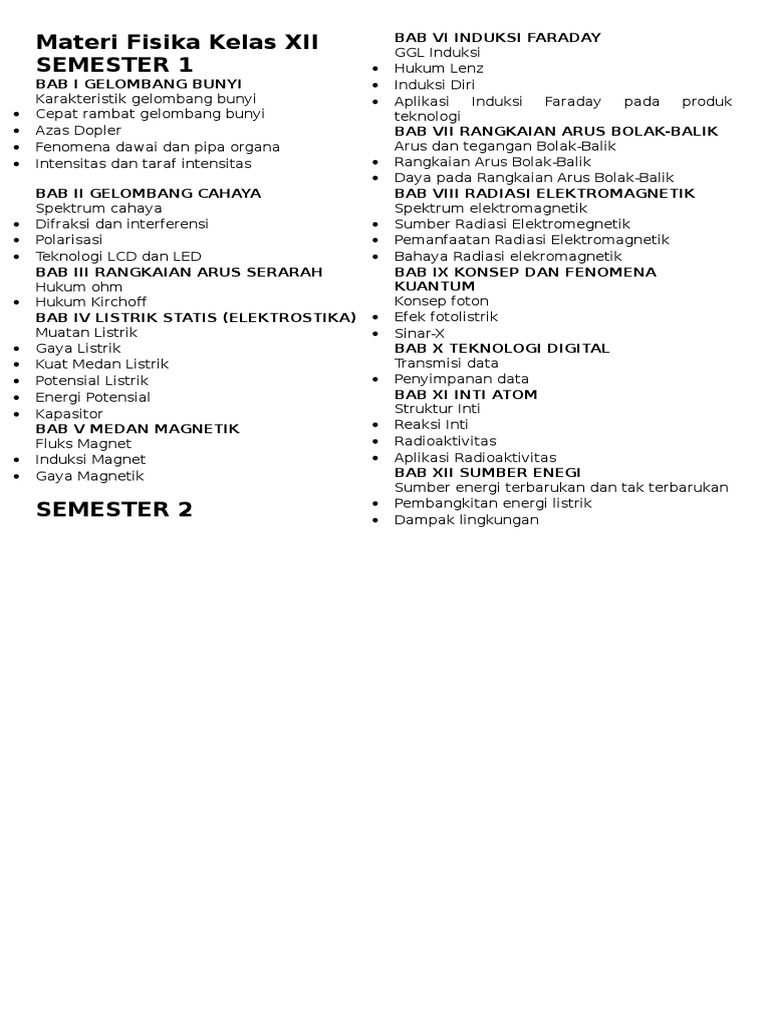 Materi Pelajaran Fisika Sma Semester 1 2 Kelas 12